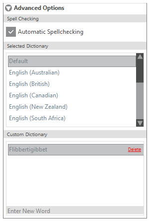 - Enable/disable 'Automatic Spellchecking'