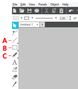 Use the Freehand tool to draw a freehand object. Click and hold down your mouse button to draw a continuous free-form line. Release your mouse button to stop when you are finished drawing.